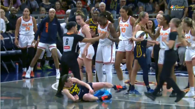 尽管在印第安纳狂热大胜康涅狄格太阳的比赛中,双方多次爆发激烈冲突,诸如克拉克一度被打脸,以及遭挑衅愤怒推搡对手爆发冲突,导致被推翻在地多人吃T。至于比赛最后阶段,太阳球员谢尔登快攻上篮被狂热球员康宁汉姆强硬犯规拽倒在地,双方再次爆发激烈冲突导致双双被驱逐。