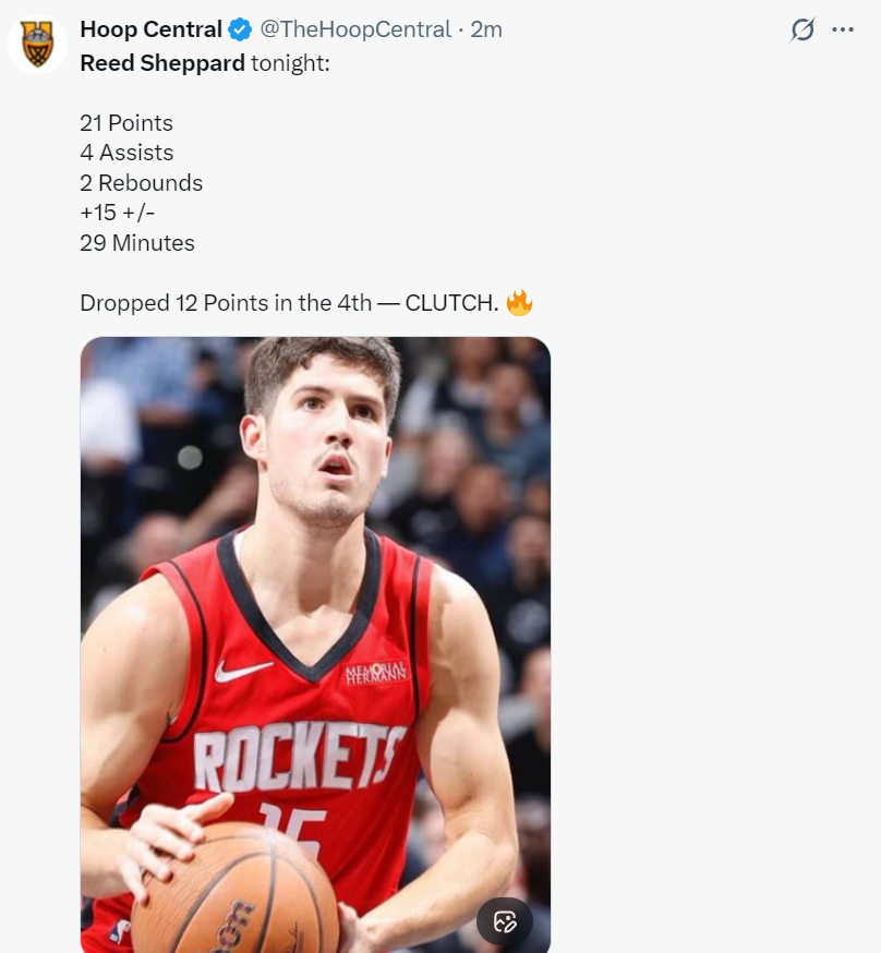 kaiyun-谢泼德末节12分登全美热搜!火箭官方为他鼓掌 休媒盼给核心地位